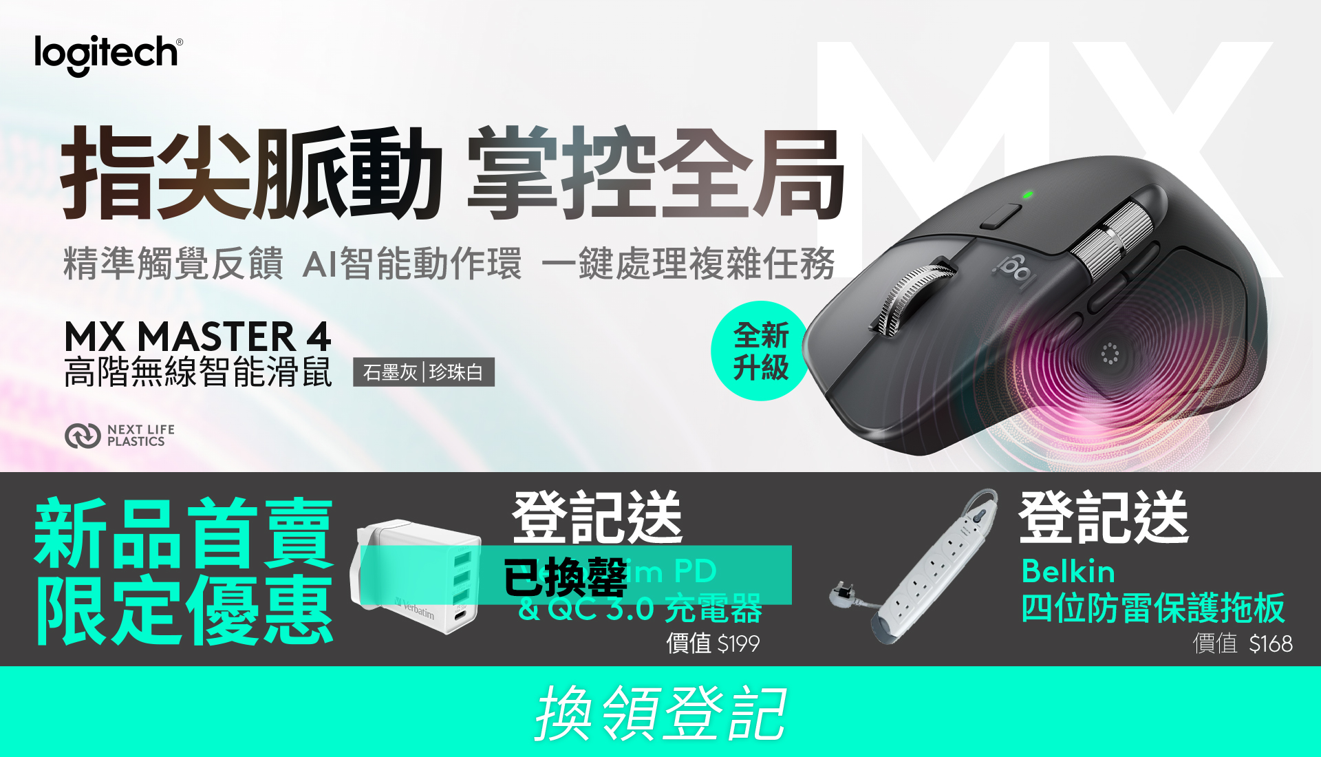 由 2025 年 10 月 1 至 10 月 14 日於 豐澤 FORTRESS 購買 MX MASTER 4 高階無線智能滑鼠可登記換領: